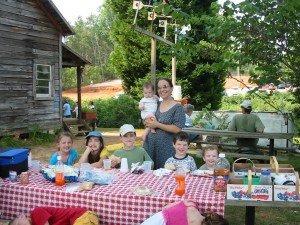 Then we drove back to “P”s house and spent the afternoon tie-dying t-shirts. It went MUCH better than either one of us anticipated… but I didn’t get any pictures of that. I was too busy helping the kids squirt the dye on their shirts (and making sure my new nursing dress wasn’t ruined in the process!)