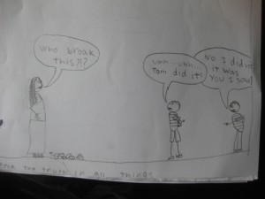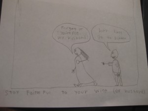 He did this one this morning. I told him, “Dude, I’m kinda scared to see you draw this one!” and he admitted that he wasn’t sure what direction he was going to take to illustrate this one. I thought he did a hysterically beautiful job!